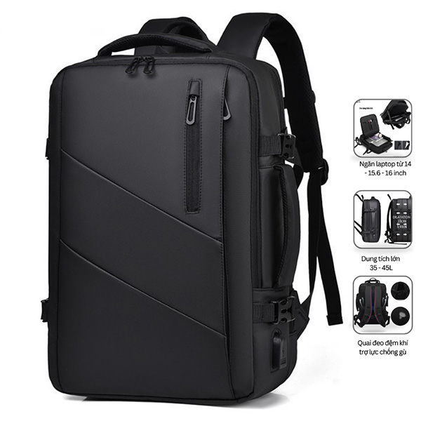 Sản phẩm: Balo laptop 17 inch chống va đập, chống nước, thiết kế bền bỉ, Màu đen 15.6 inch