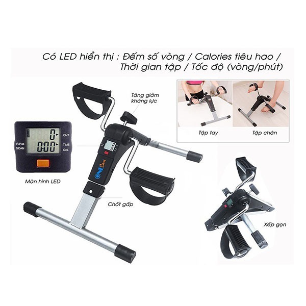 - Màn hình LCD hiển thị số vòng đạp, tốc độ, thời gian và lượng calo đã tiêu hao trong quá trình đạp.