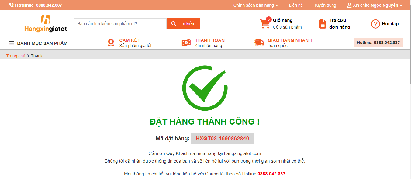 13/11/2023 16:20:33Hangxingiatot.com cảm ơn quý khách hàng đã tin tưởng sử dụng dịch vụ mua sắm hàng hóa tại website Hangxingiatot.com. Để tra cứu đơn hàng và theo dõi hành trình giao hàng bạn thực hiện theo các bước sau: